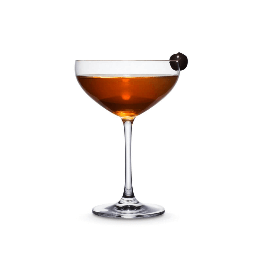Sekoita lusikalla kunnes juoma on viileää. Siivilöi juoma valmiiksi jäähdytettyyn martinilasiin ja koristele cocktailkirsikalla. Nauti ison maailman menosta vaikka kotisohvalla.