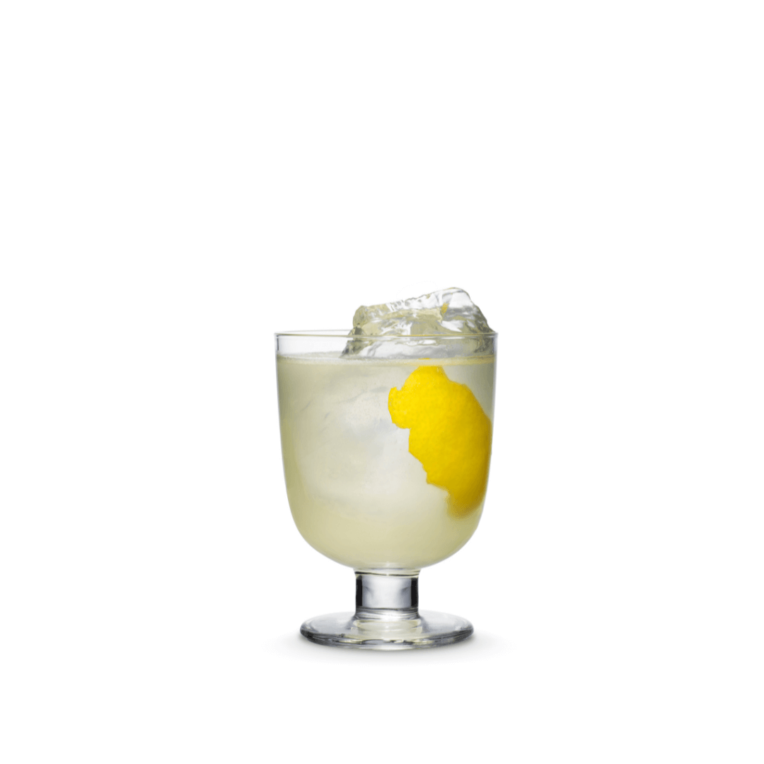 Kaada gini, sitruunamehu ja sokerisiirappi sekaan ja sekoita. Lisää sodavesi, koristele sitruunankuorella (tai appelsiinin viipaleella).