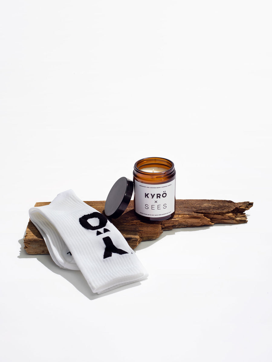 Kyrö x Sees tuoksukynttilät valmistetaan eettisesti soijavahasta Suomessa käsityönä. Rosmariinin ja katajanmarjan tuoksu saadaan 100% luonnonmukaisista eteerisistä öljyistä. Kynttilöissä ei ole käytetty lainkaan keinotekoisia ainesosia tai turhia kemikaaleja. Kynttilä palaa keskimäärin noin 25 tuntia.